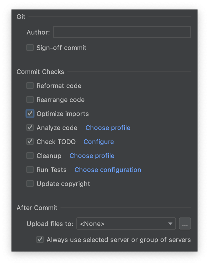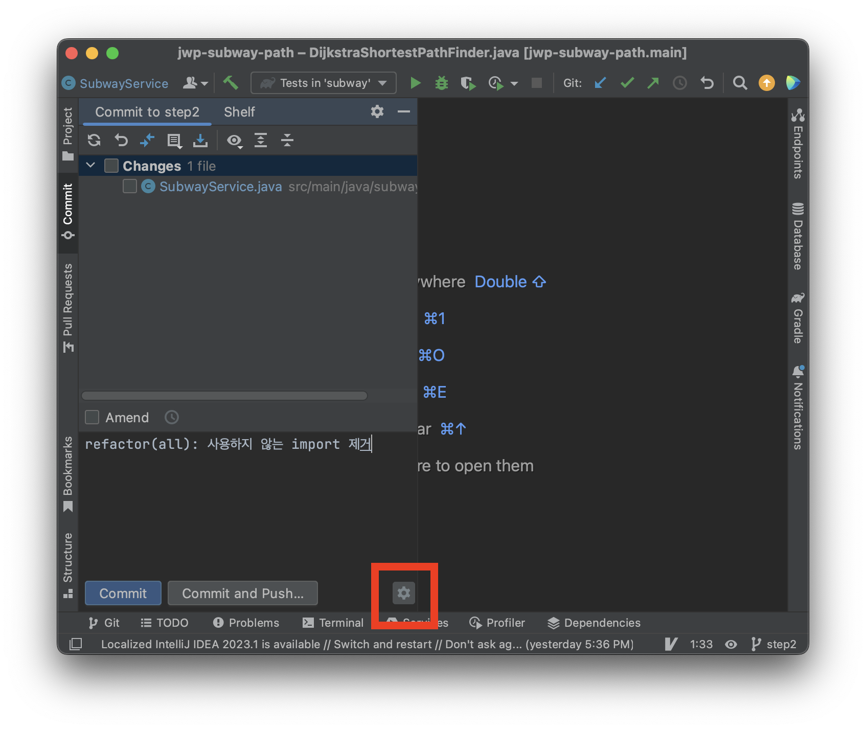IntelliJ의 Commit Tab을 열고, 아래에 있는 톱니바퀴를 선택한다.