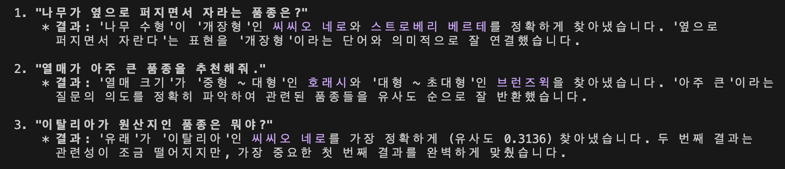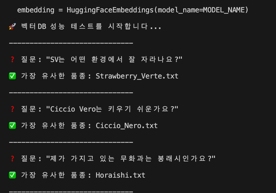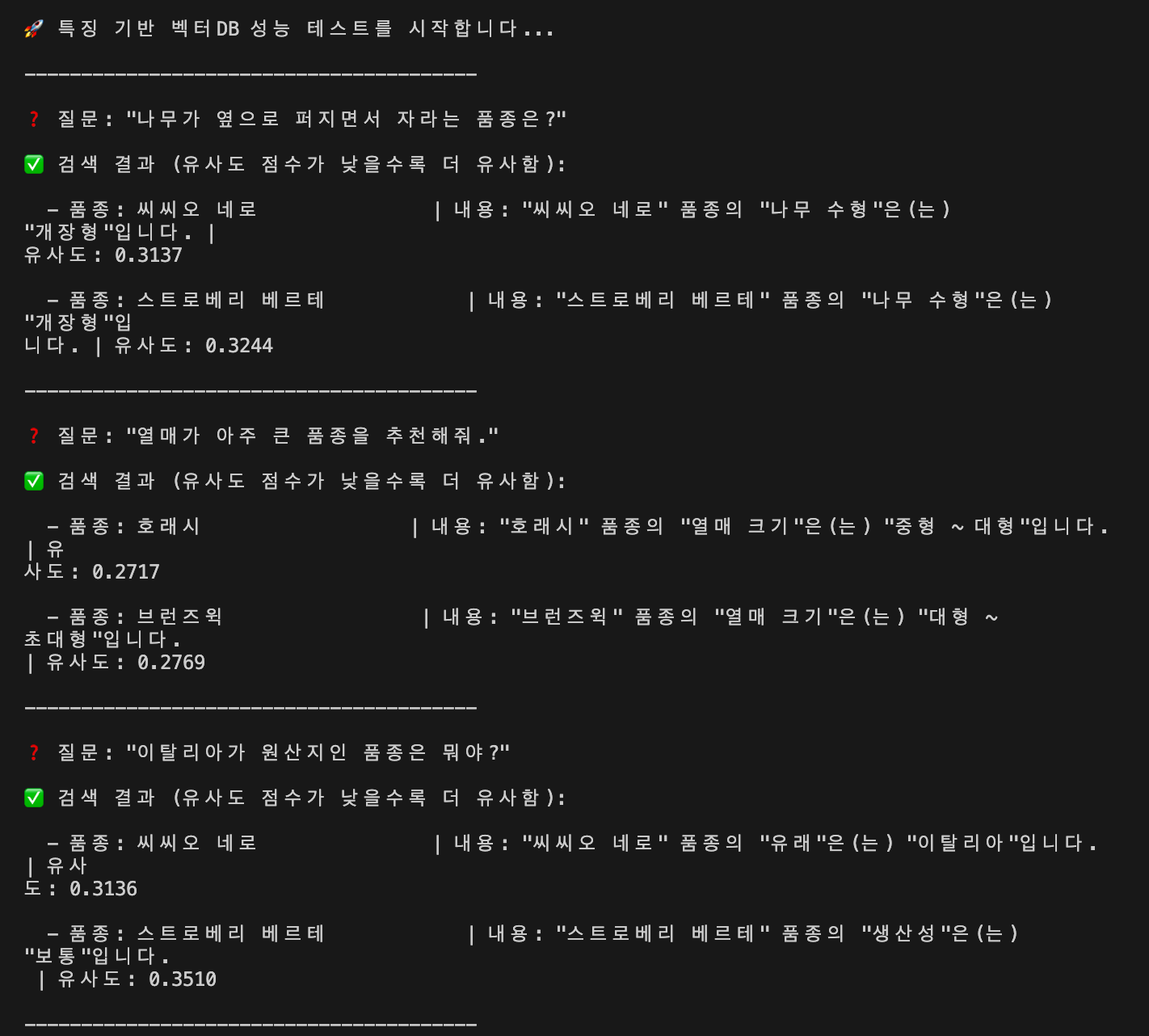 결과적으로 품종 이름만을 vector db에 저장했습니다.