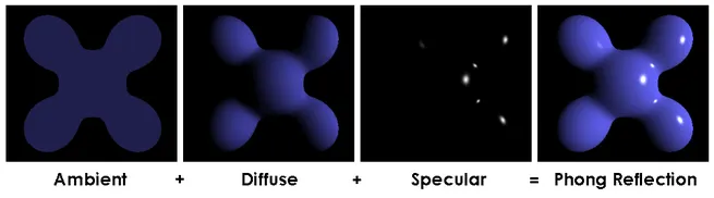 | Phong | 정점에서 법선 벡터를 보간하여 픽셀마다 조명 계산 | 느리지만 정밀한 하이라이트 표현 가능 |